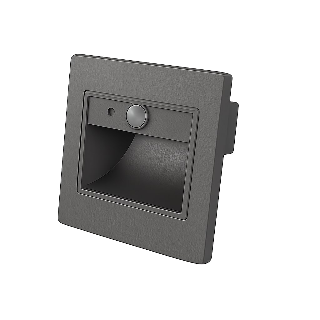 LAMPĂ DE TREPT LED PĂTRATĂ NEGRĂ 1W 80LM/W 3000K AC220-240V IP20 GRI + SENZOR